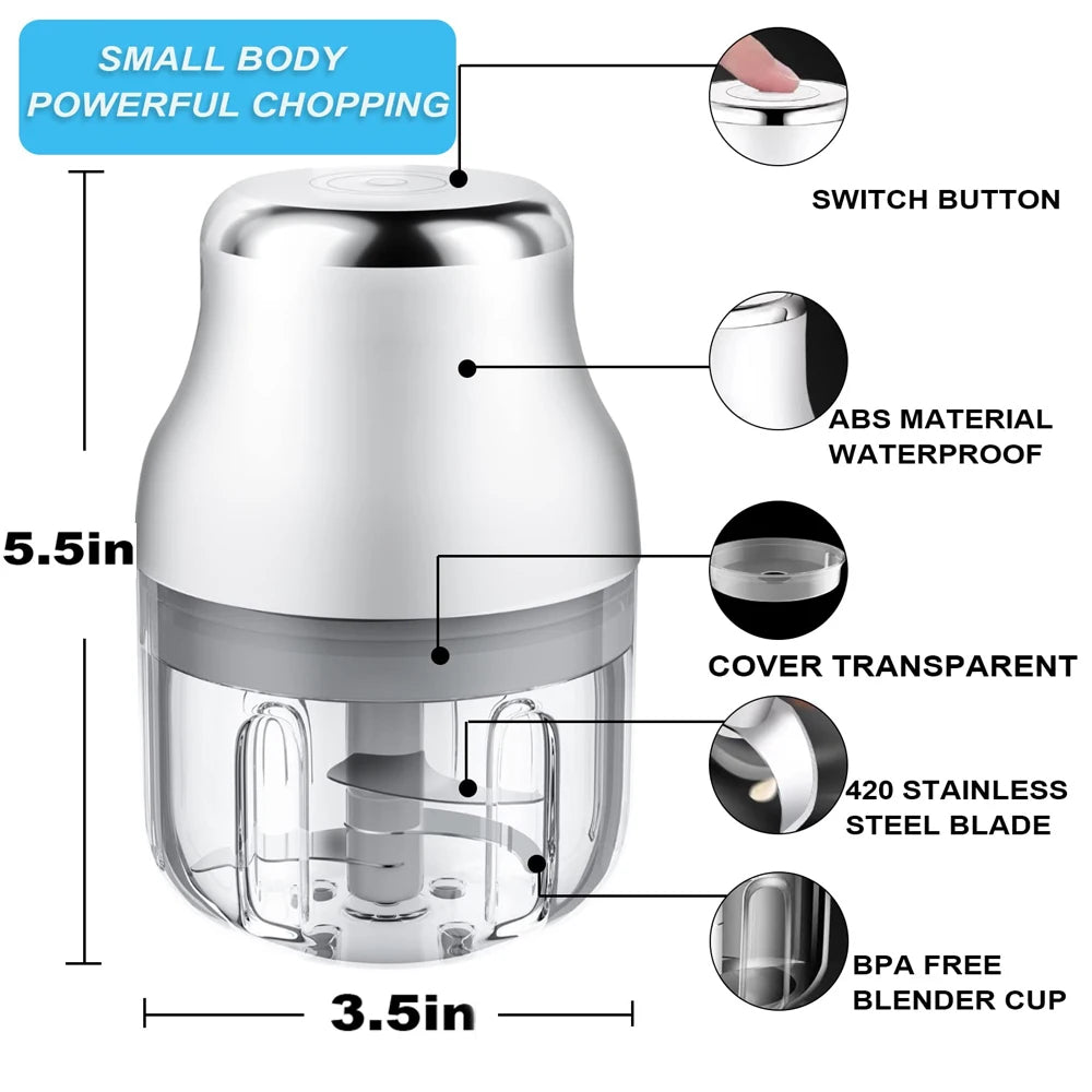 250ML Electric Garlic Chopper Wireless Mini Masher Press Chopper for Chopping and Slicing Onion Ginger Veggies Spice Baby Food